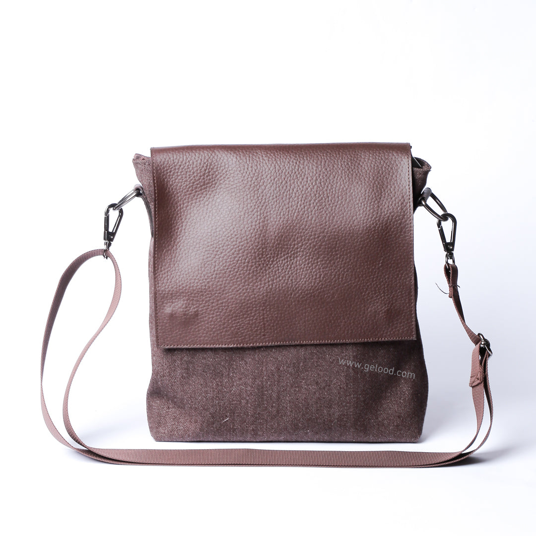 *حقيبة كتف كروس جلد × قماش دك كاجوال*
